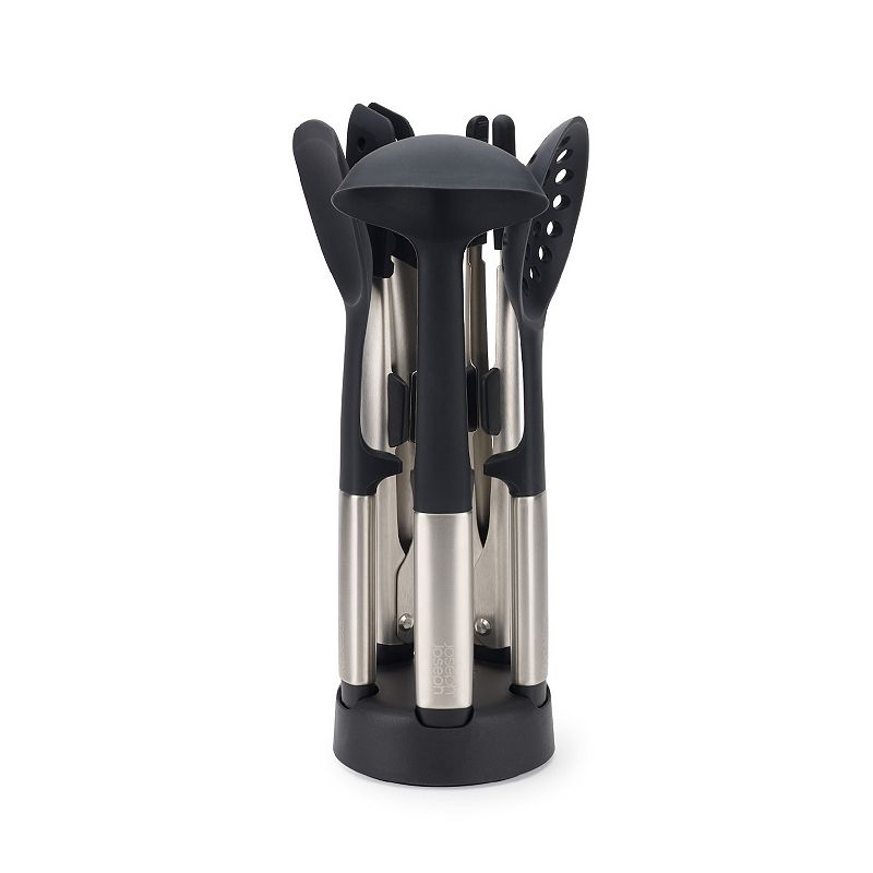 Joseph Joseph Elevate Fusion 5-piece Silicone Utensil Set with Storage Stand, BlackThis stylish 5-piece utensil set from Joseph Joseph features a space-saving storage stand and tools with heat-resistant silicone heads, sleek stainless-steel handles and integrated tool rests that prevent the heads from touching the work surface when placed down. This stylish 5-piece utensil set from Joseph Joseph featJoseph Joseph