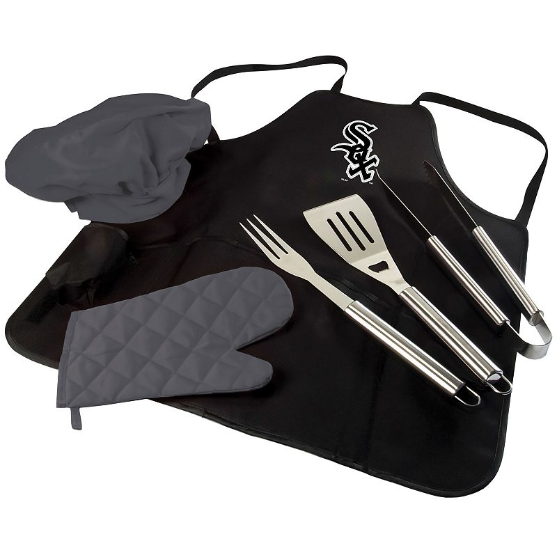 Picnic Time Chicago White Sox BBQ Apron, Utensil & Tote Set, BlackYou'll be a BBQ master on game day or any day with this Chicago White Sox apron and utensil set from Picnic Time.PRODUCT FEATURES Team logo graphic Includes: apron, spatula, fork, tongs, chef's hat & oven mitt Apron folds into a carrying tote Polyester, stainless steel Wipe clean Imported Shop our full assortment of ChPicnic Time