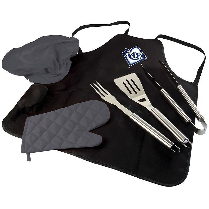 Picnic Time Tampa Bay Rays BBQ Apron, Utensil & Tote Set, BlackYou'll be a BBQ master on game day or any day with this Tampa Bay Rays apron and utensil set from Picnic Time.PRODUCT FEATURES Team logo graphic Includes: apron, spatula, fork, tongs, chef's hat & oven mitt Apron folds into a carrying tote Polyester, stainless steel Wipe clean Imported Shop our full assortment of TampaPicnic Time