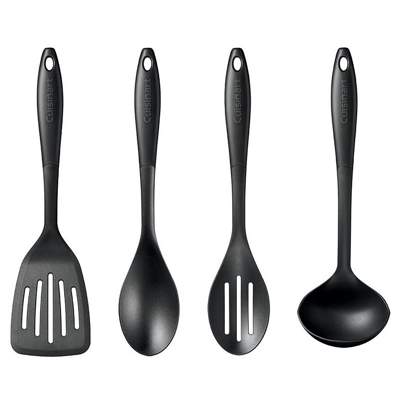 Cuisinart 4-pc. Curved Handle Utensil Set, BlackEasy to use with great counter appeal, this Cuisinart utensil set is ready to help cook and serve.PRODUCT FEATURES Handles rest flat on countertop to prevent spills Ergonomically designed for easy gripping Nonslip handles provide comfort and control, wet or dry Safe for nonstick cookware WHAT'S INCLUDED Slotted turnerCuisinart