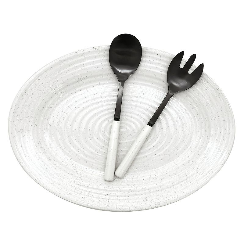 Food Network Farmstead Serving Platter & Utensil Set, WhiteFor entertaining or family feasting, this Food Network Farmstead serveware is the perfect choice. Minimalist serving platter is ideal for serving main dishes, hors d'oeuvres and more and suits any occasion Coordinating stainless steel serving utensilsWHAT'S INCLUDED 11.25-in. oval platter, serving spoon & serving forkFood Network