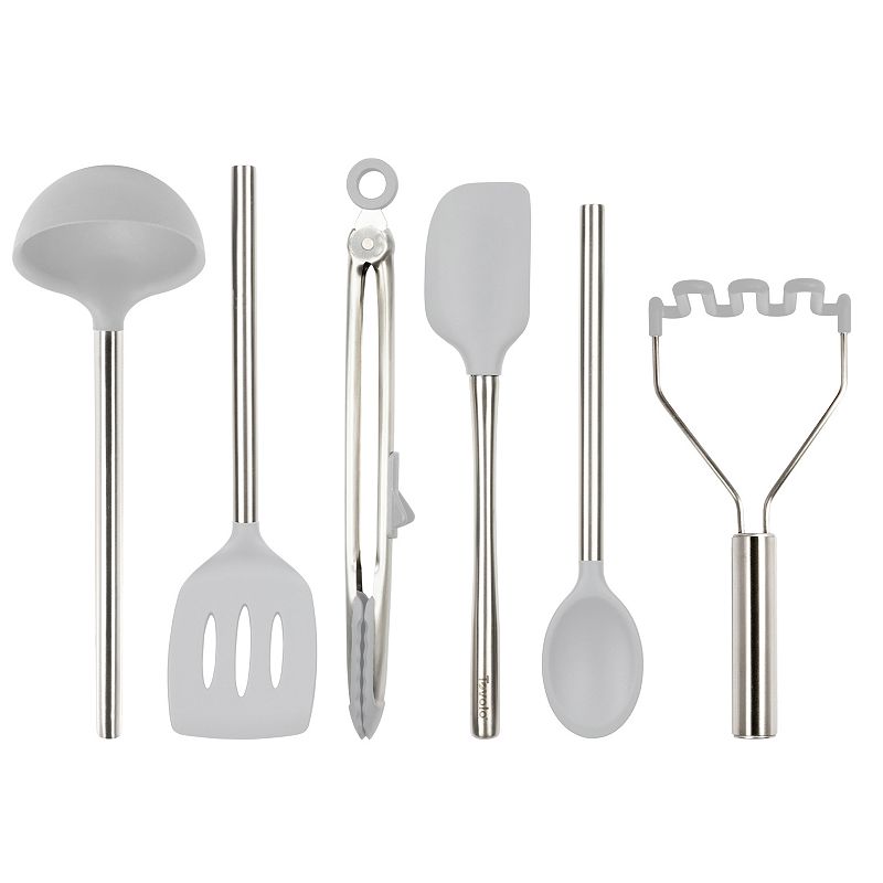 Tovolo All Silicone 6-pc. Utensil Set, Light GrayElevate your cooking experience with this Tovolo All Silicone 6-pc. Utensil Set. Elevate your cooking experience with this Tovolo All Silicone 6-pc. Utensil Set. FEATURES Ergonomically shaped stainless steel handles for a comfortable grip Stain-resistant silicone will protect non-stick cookware Food safe Heat resistantTovolo