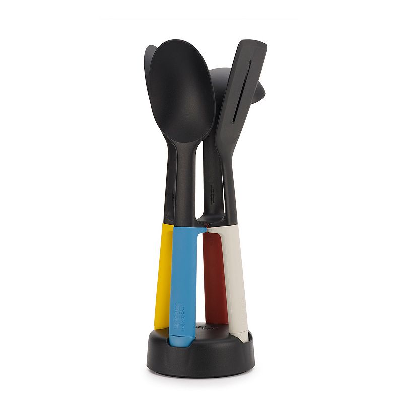 Joseph Joseph Elevate Slim 4-pc. Utensil Set with Storage Stand, MultiElevate utensils have been designed to improve hygiene and minimise the mess made by placing utensils onto kitchen surfaces during use. Each tool has a weighted handle with an integrated tool rest that prevents the head from touching the work surface when placed down. Elevate utensils have been designed to improve hygiJoseph Joseph