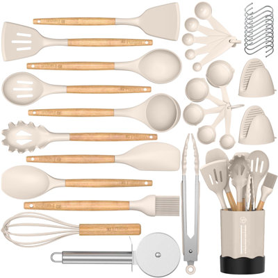 • 35-Piece Silicone Kitchen Utensil Set With Wooden Handles - Heat Resistant & Durable Cooking ToolsDiscover the ultimate 35-piece silicone kitchen utensil set, designed for durability and performance. Featuring food-grade silicone and sturdy wooden handles, these utensils are perfect for any cooking task. With heat resistance up to 446F, they ensure a safe and enjoyable cooking experience while protecting your cookw