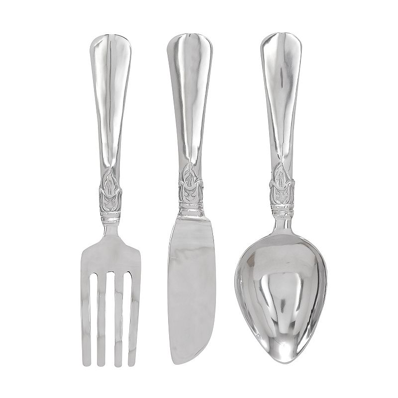 • Stella & Eve 3-pack Oversized Aluminum Kitchen Utensil Wall Decor, GrayEasily change the look of your existing space and elevate the look with this decor from Stella & Eve. 24" x 24" Weight: 4.2-lbs. Vertical display Hanging type: Attached hanging hook Aluminum Wipe clean Imported Size: Large. Color: Gray. Gender: unisex. Age Group: adult.