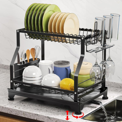 Dish Rack For Kitchen Counter,2 Tier Dish Drying Rack With 360 Swivel Spout,Large Dish Drainer With Utensil Holder,Adjustable Wine Glasses And Cup HoThe kitchen drying rack for dishes is made of high-strength steel and is powder coated with high-temperature lacquer,ensuring that kitchen dish rack with drain board is sturdy and anti-rust. The dish racks for kitchen counter features an automatic drainage system that consists of a drain tray and drain spout at the botMCKINNON HOME FURNISHINGS, INC.
