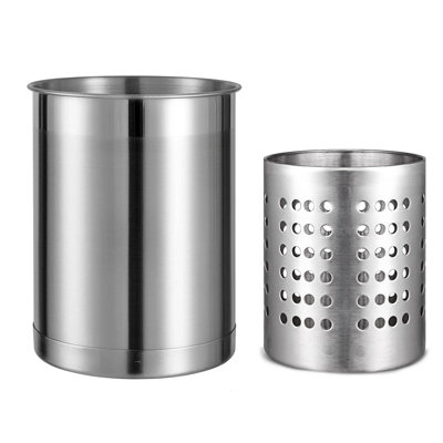 Round Stainless Steel Utensil Holder - Silver Caddy & Organizer For Cooking Spoons, Spatulas, And Silverware - Essential Kitchen Container For CounterThis product Thick Durable Brushed Stainless-steel; The 6.6inch Taller Utensil Holder with the screw underneath make the holder more stable, the short one is pefect for drying utensils, silverwares or more,aim to offer long life time use kitchen utensils to keep our world less waste, more safe for envioment. Latitude RLatitude Run