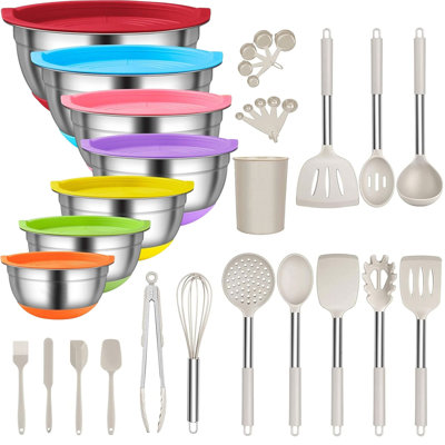 25 -Piece Kitchen Utensil18 pieces of silicone cookware set, kitchen set, non-stick heat-resistant cookware-BPA-free, 7 pieces of stainless steel The Mixing Bowl, with salt and pepper grinder and kitchen scale. Smith BartonSmith Barton