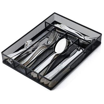 Utensil Drawer Organizer, Cutlery Tray Silverware Flatware Storage Divider For Kitchen, Mesh Wire With Non-Slip Foam Feet, 5 Component, BlackThis product perfect for kitchen, restaurant, bedroom, living room drawer, countertop for tableware, cooking utensils, stationery, tools and cosmetics . Also, it can be used for school and office to hold pens, markers, scissors, clips, glues, etc.Easily accommodate your silverware storage needs. The silverware tray wilHokku Designs
