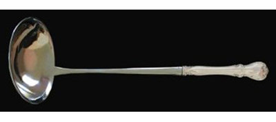• Repousse Terminal Large Soup LadleThis pattern was named after the art of Repousse (the process of embossing metal from the back by hammering), originally used in European silversmithing. The Repousse pattern, first crafted in 1828, features an intricate floral design along its entire stem and handle. Kirk Stieff