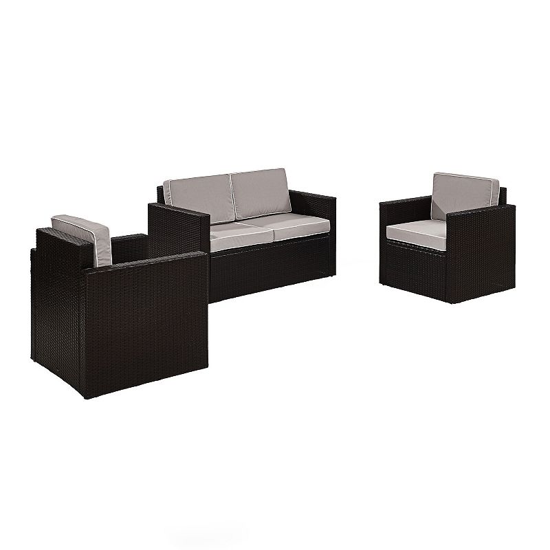 Crosley Palm Harbor Patio Loveseat & Arm Chair 3-piece Set, GrayThis Crosley Palm Harbor patio loveseat and arm chair set lends traditional style that's sure to complement any entertainment space.Water-resistant All-weather wicker Fade-resistant cushions For indoor / outdoor use WHAT'S INCLUDEDLoveseat: 30''H x 53.5''W x 28.75''DTwo chairs: 30''H x 29.5''W x 28.75''D (each)LoveseatCrosley