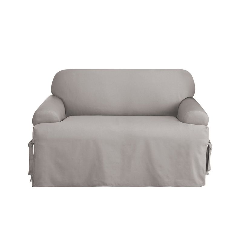 Sure Fit Solid Duck ClothT-Cushion Loveseat Slipcover, GrayTo a tee. These duck cloth slipcovers put the perfect finishing touch on your decor. Choose from a wide selection of beautiful colors. Tailored arms and a straight skirt ensure clean lines and a custom fit. One-piece design with corner ties fits snugly over T-shaped cushions. Pure cotton construction is soft, yet durabSure Fit