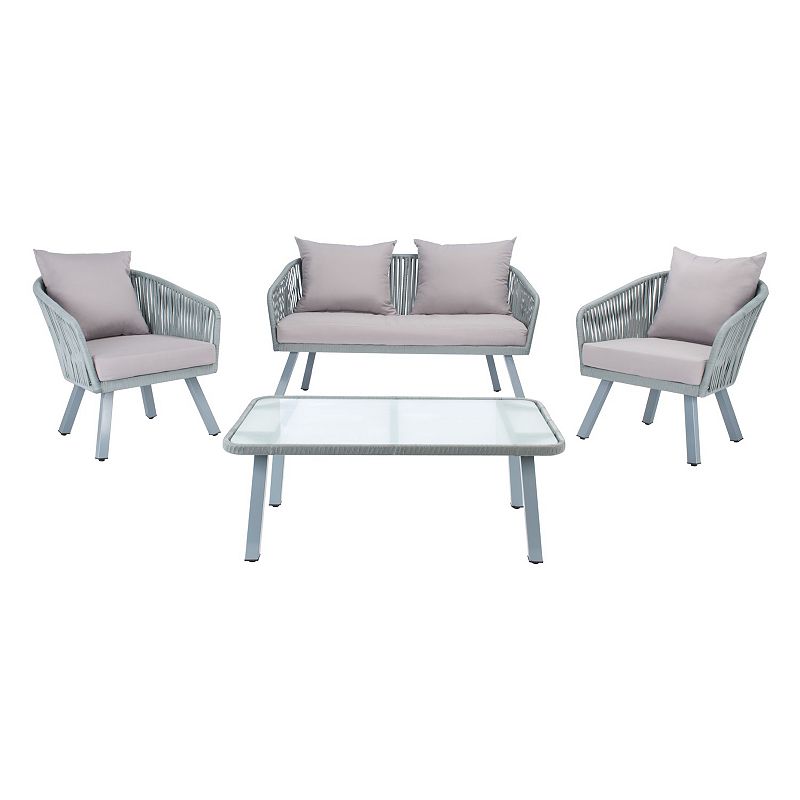 Safavieh Jorda Rope Loveseat, Chair & Coffee Table 4-piece Set, GrayTired of your home decor? Break the mold with this Safavieh Jorda Rope Loveseat, Chair & Coffee Table 4-piece Set. Tired of your home decor? Break the mold with this Safavieh Jorda Rope Loveseat, Chair & Coffee Table 4-piece Set. Wicker design For outdoor use Imported Model no. PAT7518 Table weight limit: 132.3 lbs. ChSafavieh