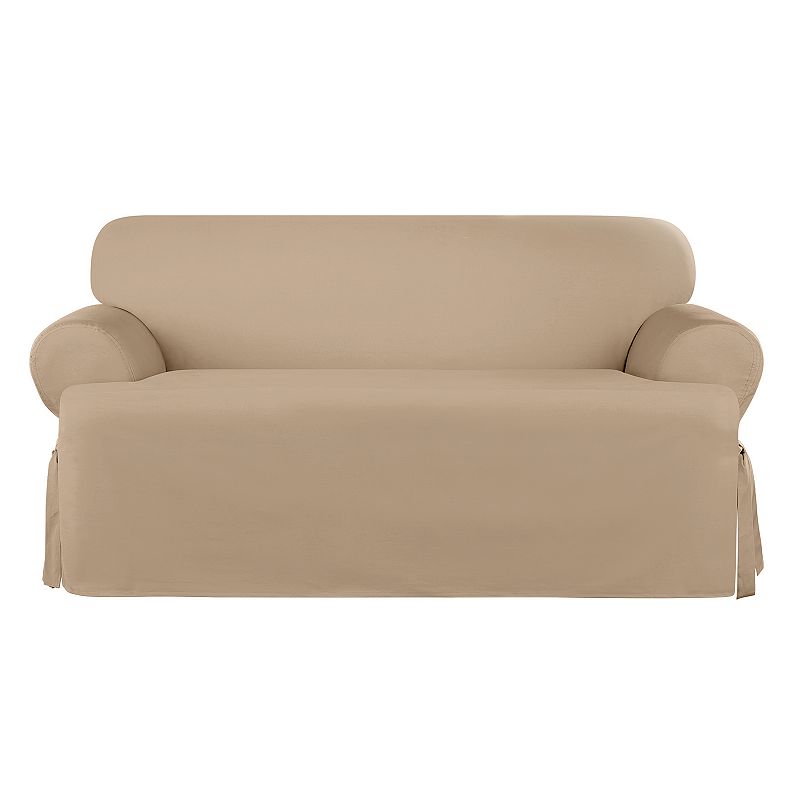 Sure Fit Sailcloth T-Cushion Loveseat Slipcover, GreenFreshen up your space with this Sure Fit sailcloth furniture slipcover.FEATURES Fits loveseats 30" to 40" high Fits loveseats 58" to 73” wide from outside arm to outside arm Fits loveseats 32" to 42" deep Tie closure Fits T-cushions: the "T" shape generally serves to wrap the seat cushion in front of the armrests on boSure Fit