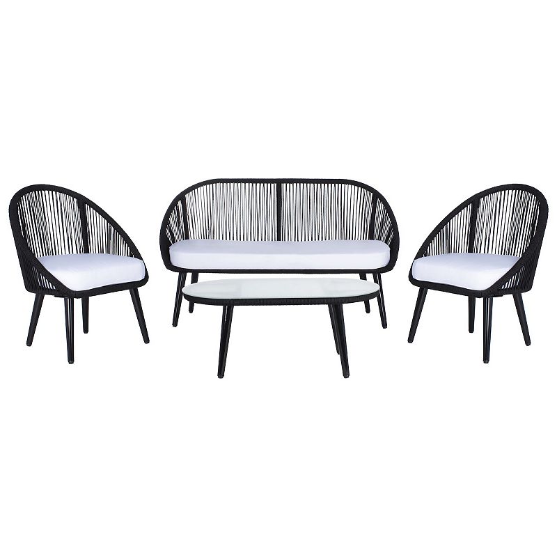 Safavieh Halcott Patio Loveseat, Coffee Table & Chairs 4-piece Outdoor Living Set, Black WhiteLiven up your outdoor decor with this stylish Safavieh Halcott Patio Loveseat, Coffee Table & Chairs 4-piece Outdoor Living Set.Click this HOME DECOR & FURNITURE GUIDE to find the perfect fit and more! Liven up your outdoor decor with this stylish Safavieh Halcott Patio Loveseat, Coffee Table & Chairs 4-piece Outdoor LSafavieh