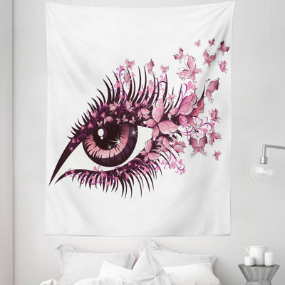 Butterflies Tapestry King Size, Female Eye Eyelashes Mascara Stare Party Makeup Animal Print, Wall Hanging Bedspread Bed Cover Wall Decor, 104" X 88",These one-of-a-kind tapestries will help transform your room into your private sanctuary! Environmentally friendly, no dye substance harming the health of your family. With high-resolution pictures it will bring a 3D-like realistic experience, adding a great perspective & completely changing the look of a room. You canEast Urban Home