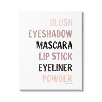 Makeup To-Do List Blush Mascara Lip Stick Blush Black Framed Giclee Texturized Art By Lady Louise DesignsProudly made in the USA, our stretched canvas, framed gicle and wall plaques are created with only the highest standards. We print with high quality inks . The art comes ready to hang with no installation required. Stupell Industries Format: Wrapped Canvas, Size: 16" H x 20" WStupell Industries
