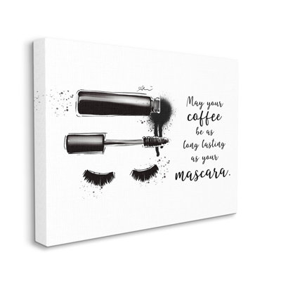 Coffee & Lashes Mascara Phrase Canvas Wall Art By Alison PetrieProudly made in the USA, our stretched canvas, floter framed, framed gicle and wall plaques are created with only the highest standards. We print with high quality inks . The art comes ready to hang with no installation required. Stupell Industries Size: 24" H x 30" W x 1.5" DStupell Industries