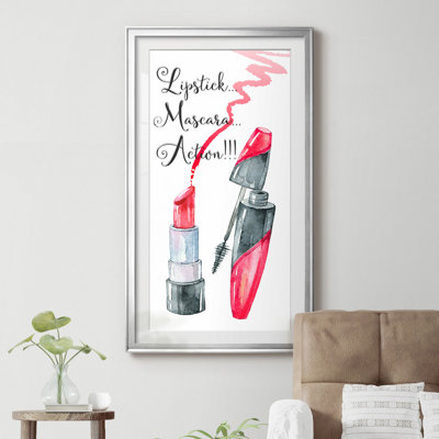 Lipstick, Mascara, Action! - Picture Frame Painting Print on PaperPremium gallery wrapped print. Ready to hang. A premium hand-stretched gallery-wrapped canvas print created to last. Featuring a beveled solid wood stretcher-bar. Each piece is made to order. Solid wood stretcher. Fade and water-resistant. House of Hampton Format: Silver Framed Paper, Size: 10.5" H x 18.5" W x 1.5" DHouse of Hampton