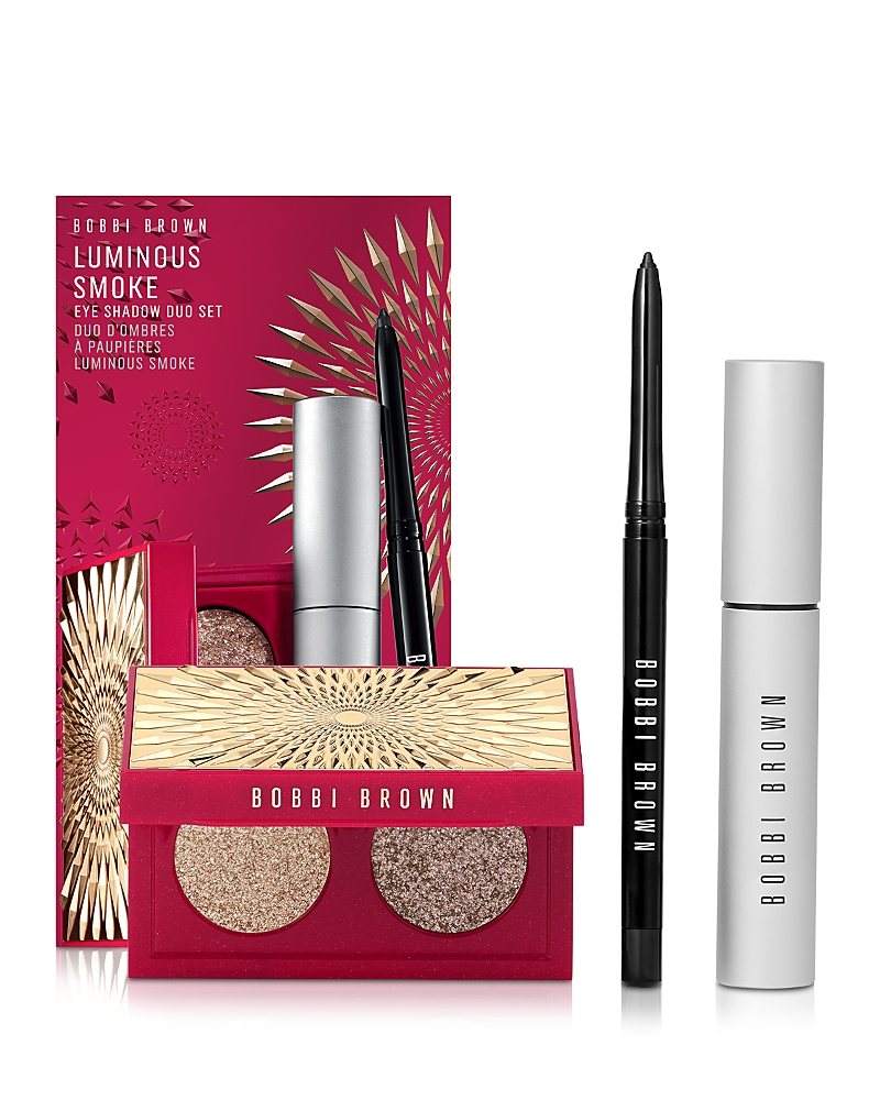 Bobbi Brown Luminous Smoke Eyeshadow, Eyeliner & Mascara Set ($99 value) - Size - OSWhat It Is:A limited-edition set complete with all the beauty you need to create a holiday eye look.Set Includes:- Metallic Eye Shadow in New Suede Sugar & New Steel Quartz 2 x 0.03 oz.- Perfectly Defined Gel Eyeliner in Pitch Black 0.012 oz.- Smokey Eye Mascara in Black 0.2 oz.What It Does:- Metallic Eye Shadow blendsBobbi Brown