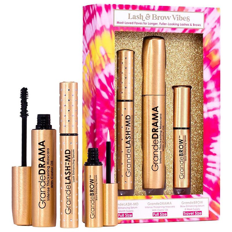 Grande Cosmetics Lash and Brow Vibes Mascara and Lash Serum Set, NoneWhat it is: A limited-edition three-piece set of show-stopping enhancers and a sultry mascara for far out lashes and legendary brows.Highlighted Ingredients: - Radish Root Ferment (GrandeLASH-MD): Packed with peptides for conditioning properties.- Vitamin E (GrandeBROW): An essential vitamin to support brow health.- CaGrande Cosmetics