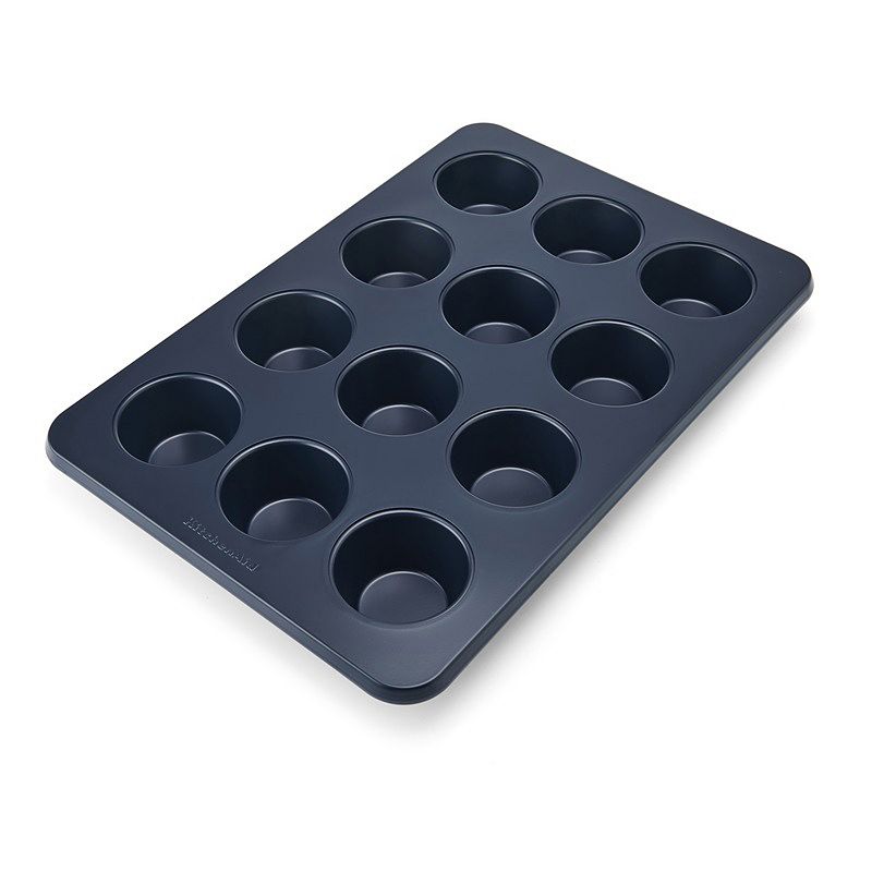 KitchenAid Nonstick 12-Cup Muffin Pan, Ink BlueUp your baking game with this 12-cup muffin tin from KitchenAid. FEATURES Aluminized steel construction promotes consistent heat distribution across the pan for even baking results Durable nonstick, oven-safe, heavy-duty aluminized steel pan stands up to high heat for all your baking needs; features a uniquely designedKitchenAid