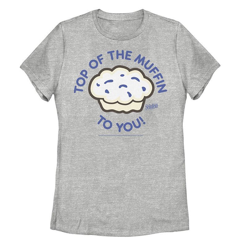 Juniors' Seinfeld Top Of The Muffin To You Tee, Girl's, Size: XXL, Athletic GreyFeaturing Elaine Benes' brilliant business idea, this juniors' "Top of the Muffin to You" tee is perfect for Seinfeld superfans. Featuring Elaine Benes' brilliant business idea, this juniors' "Top of the Muffin to You" tee is perfect for Seinfeld superfans. Crewneck Short sleevesFABRIC & CARE Cotton, polyester MachineLicensed Character