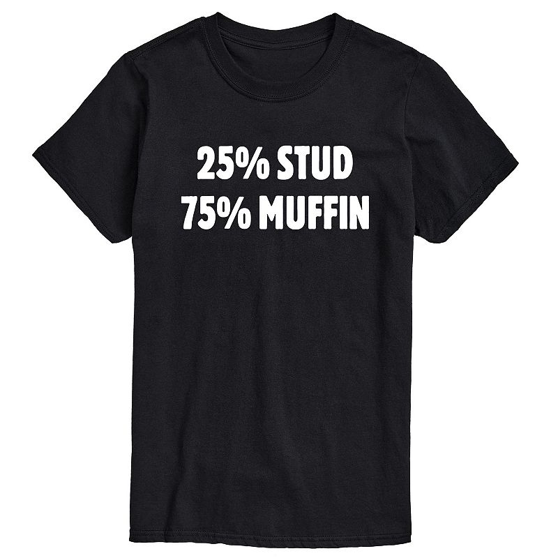 Men's 25 Percent Stud 75 Percent Muffin Graphic Tee, Size: Large, BlackUpdate your casual wardrobe with this Men's 25 Percent Stud 75 Percent Muffin Graphic Tee. Update your casual wardrobe with this Men's 25 Percent Stud 75 Percent Muffin Graphic Tee. FABRIC & CARE Solid: cotton Imported Heather: cotton, polyester Machine washFEATURES Crewneck Short sleeves Size: L. Color: Black. Gender:Licensed Character