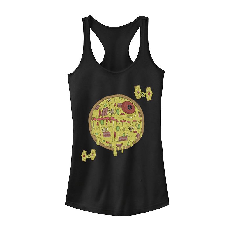 Juniors Star Wars Death Star Pizza Tank Top, Girl's, Size: Small, BlackCut a slice of intergalactic style with this Star Wars pizza tank top. Scoopneck SleevelessFABRIC & CARE Cotton, polyester Machine wash Imported Size: Small. Color: Black. Gender: female. Age Group: kids.Licensed Character