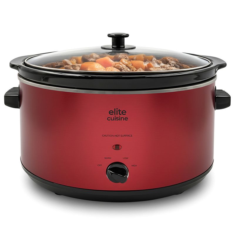Elite Cuisine 8.5Qt. Stainless Steel Slow Cooker with Adjustable Settings and Keep Warm, Multi NoneTransform your kitchen into a hub of culinary creativity with the Elite Cuisine 8.5-qt. Slow Cooker. Crafted from sleek red stainless steel, this elegant appliance offers easy-to-use settings including low, high, and keep-warm options. Inside, an ample 8.5-quart oval stoneware pot awaits, perfect for everything from heElite