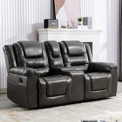 2 Seater Home Theater Recliner Manual Recliner Chair With A Storage Box And Two Cup Holders For Living RoomManual Recliner - This recliner chair is easy to push back and make your reclining a breeze. When you pull the handle and press your back with the backrest, there has different seating positions that you can adjust from angel 110 to 150. Latitude Run Upholstery Color: GrayLatitude Run