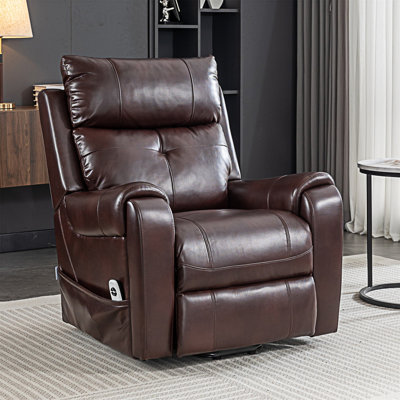 Recliner Chair With Ottoman, Electric Faux Leather Recliner With 10 Vibration Points And 5 Massage Mode, Reclining Chair With Swivel Wood Base, RemoteAfter a tiring day, you can sit down, relax, and let this recliner with an ottoman from Ebern Design give you a thorough massage. The massage points are spread over the back, lumbar, thighs, and legs. You can choose the automatic function to enjoy pre-programmed massages or choose the manual function to enjoy various mEbern Designs