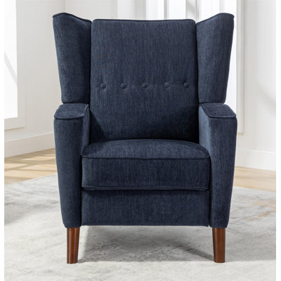 Mid Century Chenille Wingback Recliner Chair, Button Tufted Design Pushback Recliner Chair With Armrest And Solid Wood Legs, For Bedroom Living RoomIts plush cushioning and ergonomic design provide a luxurious seating experience, perfect for relaxing after a long day. Latitude Run Fabric: Navy Blue ChenilleLatitude Run