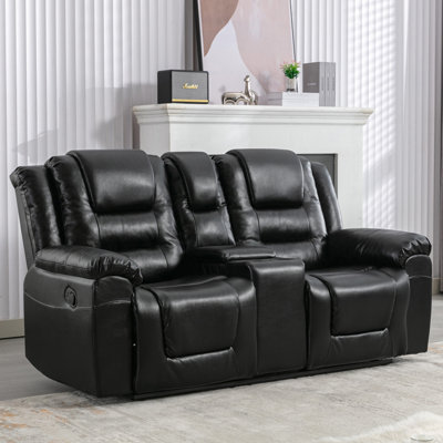 2 Seater Home Theater Recliner Manual Recliner Chair With A Storage Box And Two Cup Holders For Living Room,BedroomOverstuffed Soft Cushion and Wider Armrests - The recliner chair has a highly padded back and cushions, as well as wide armrests, giving you a more comfortable sitting feeling and a warm feeling of wrapping. Latitude Run Upholstery Color: BlackLatitude Run