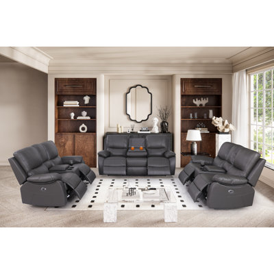 Aspelare 3 - Piece Genuine Leather Living Room Set(Two Recliner Loveseat + One Recliner Sofa)Our this Recliner Sofa Set (Two Recliner Loveseat + One Recliner Sofa)for Living Room Furniture Set which is GENUINE Leather Suitable for living room, bedroom, apartments, and office. The upholstered fabric is Long-wearing genuine leather, this beautiful furniture will be part of your family home theater movie nights fLatitude Run