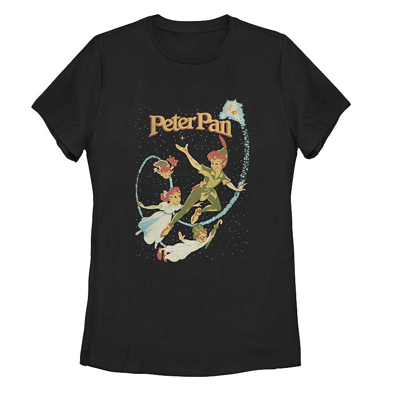 Disney's Peter Pan Juniors' Fly By Night Vintage Tee, Girl's, Size: Medium, BlackJoin Peter Pan and his friends as they journey to Never Land with this black graphic tee. Join Peter Pan and his friends as they journey to Never Land with this black graphic tee. Crewneck JerseyFABRIC & CARE Imported Machine wash - Delicate Cotton Size: Medium. Gender: female. Age Group: kids.Disney