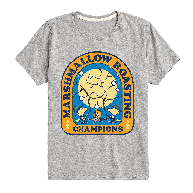 Boys 8-20 Peanuts Marshmallow Roasting Graphic Tee, Boy's, Size: XL, Grey GrayHe'll love showing off his sense of style with this boys' Peanuts Marshmallow Roasting Tee. FEATURES Crewneck Short sleevesFABRIC & CARE Solid colors: cotton; Heather colors: cotton, polyester Machine wash Imported Size: X Large. Color: Heather Gray. Gender: male. Age Group: kids. Pattern: graphic. Material: Polyester|Licensed Character
