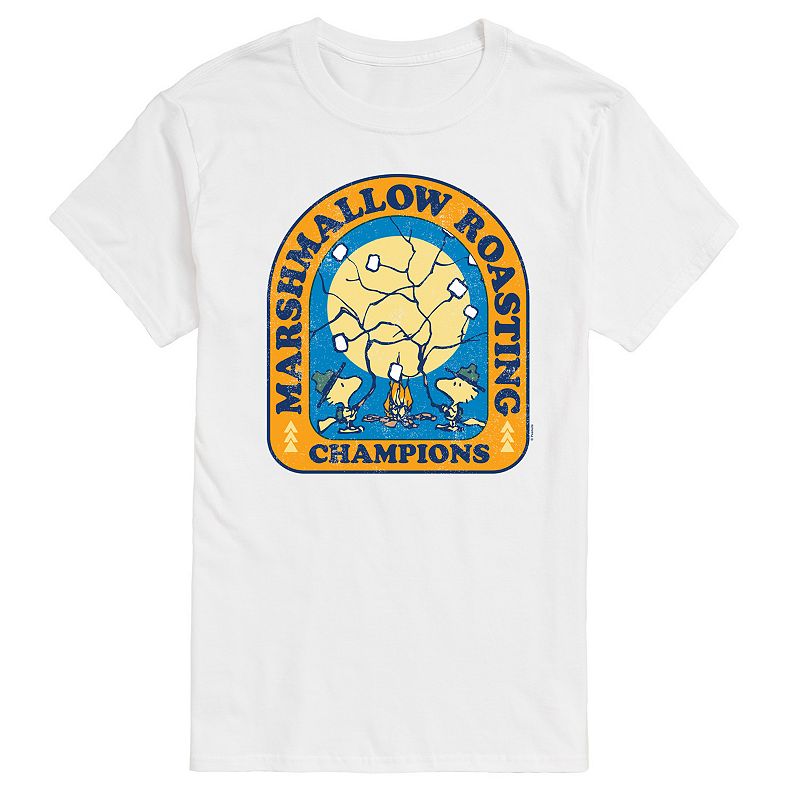 Men's Peanuts Marshmallow Roasting Graphic Tee, Size: Small, WhiteUpdate your casual wardrobe with this Men's Peanuts Marshmallow Roasting Graphic Tee. FEATURES Crewneck Short sleeveFABRIC & CARE Solid colors: cotton; Heather colors: cotton, polyester Machine wash Imported Color: White. Gender: male. Age Group: adult.Licensed Character