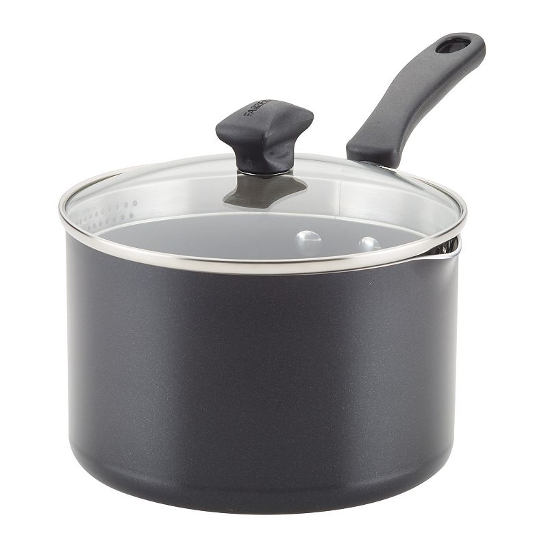 Farberware Cookstart 3-qt. Aluminum DiamondMax Nonstick Straining Saucepan, BlackHome chefs who log lots of hours in the kitchen will love this Farberware Cookstart DiamondMax cookware. Its heavy-duty aluminum construction ensures excellent heat distribution and durability that lasts recipe after recipe. Home chefs who log lots of hours in the kitchen will love this Farberware Cookstart DiamondMaxFarberware