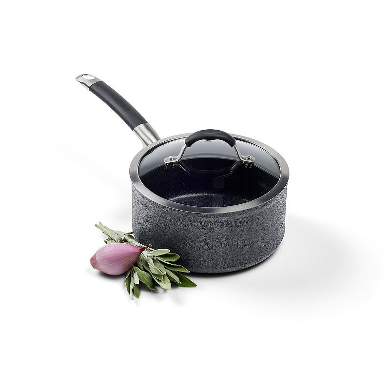 Circulon Elementum Hard-Anodized 3-quart Nonstick Covered Straining Saucepan, GrayGet a solution-driven, versatile saucepan to help you work smarter, not harder, in the kitchen with the Circulon Elementum nonstick straining saucepan.PRODUCT FEATURESCrafted from super-tough, hard-anodized aluminum that's twice as strong as stainless steel TOTAL Nonstick System of raised circles and triple layer, premCirculon