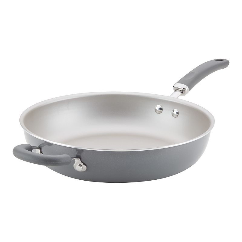 Rachael Ray Create Delicious Aluminum Nonstick 12.5-in. Deep Skillet, GrayStyle and function combine perfectly in this Rachael Ray Create Delicious deep skillet. PlatinumShield Technology enhanced silver nonstick is reinforced to be 9x's harder than titanium for effortless food release and long-lasting durability Dishwasher-safe aluminum construction provides fast, even heating and easy cleaRachael Ray