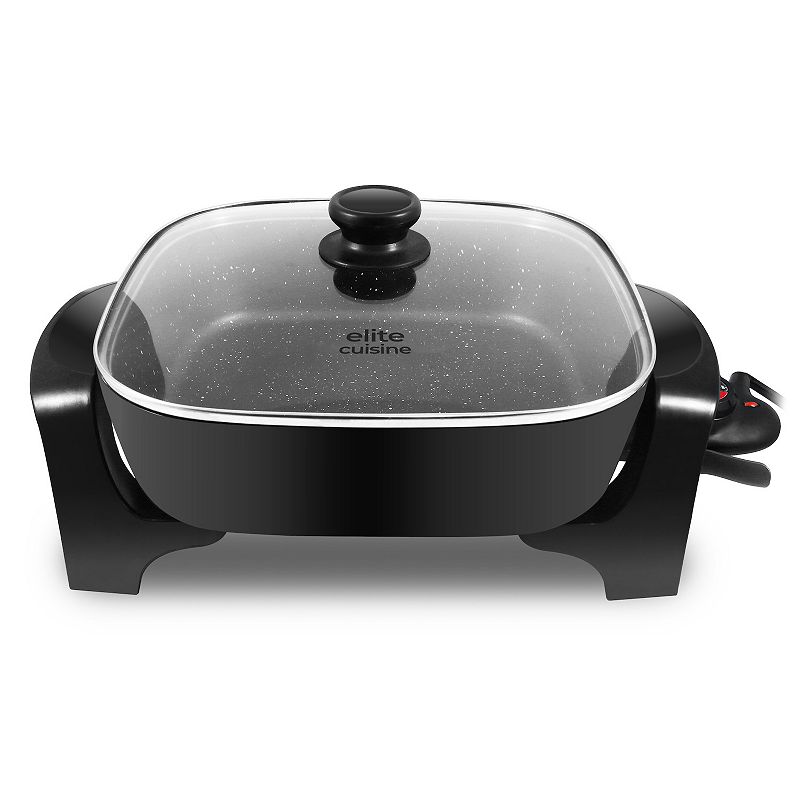 Elite Cuisine 12? Extra Depth 3" Electric Skillet with Glass Lid, BlackThe Elite Cuisine 12? Extra-deep Electric Skillet offers ample cooking space with a non-stick surface and adjustable temperature control for diverse meals.WHAT'S INCLUDED Includes skillet body, tempered glass lid, and temperature controlCONSTRUCTION & CARE Aluminum, glass Dishwasher safe accessories, Hand washDETAILS 1Elite