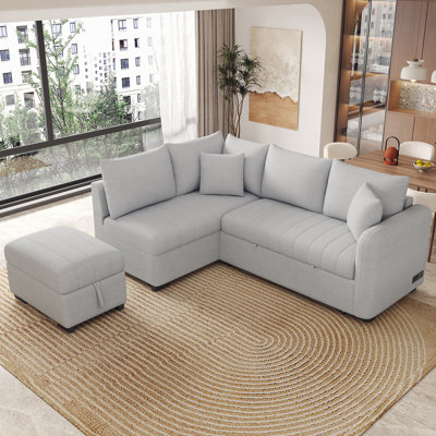 Modern Sofa Sofa Deep Seat Sofa 3 Seater For Living Room Comfy Sofa L-Shape Sofa Couch With Chaise Home Furniture Sleeper Sectional SofaA cozy and stylish sofa, perfect for lounging and relaxing. Designed for comfort and durability, this versatile piece adds a touch of elegance to any space. Latitude Run Upholstery Color: GrayLatitude Run