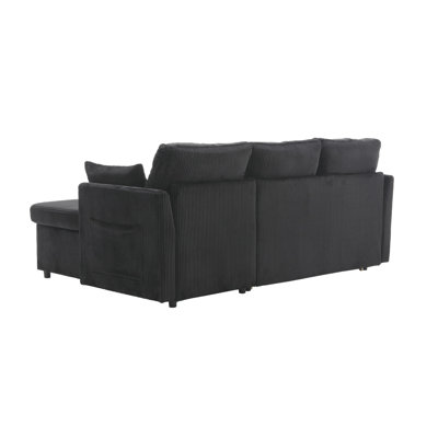 Modular L-Shaped Sofa, Modular Long Sofa With Reversible Chaise Lounge, Sofa Bed, Sleeper Sofa, Modular Sofa Combination With Storage SeatsThe sofa has storage space under the seats, providing convenient storage for items and enhancing usability. LOONGFIELD Body Fabric: BlackLOONGFIELD