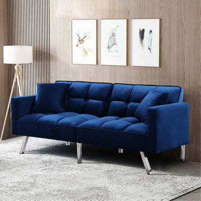 Modern Sofa 78" Italian Velvet Futon Sofa Bed, Convertible Sleeper Loveseat Couch With Folded Armrests And Storage BagsA cozy and stylish sofa, perfect for lounging and relaxing. Designed for comfort and durability, this versatile piece adds a touch of elegance to any space. Mercer41 Upholstery Color: BeigeMercer41
