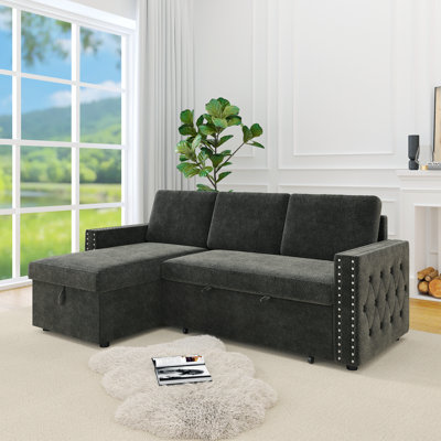 90" Pull Out Sleeper Sofa L-Shaped Couch Convertible Sofa Bed With Storage Chaise, Storage Racks And USB PortsThis push-pull sofa uses an innovative push-pull mechanism, which can instantly transform from a comfortable sofa into a spacious bed with just one pull, perfectly adapting to your life needs, whether it is a lunch break, a night's sleep or a temporary guest, it is an ideal choice for small homes. The push-pull mechaniLatitude Run