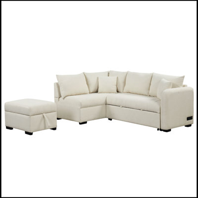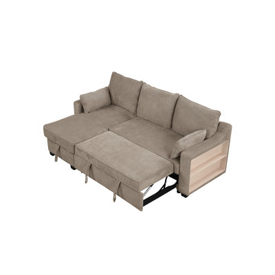 82.6" L-shaped Sectional Pull Out Sofa Bed Sleeper Sofa with Two USB Ports, Two Power SocketsThis L-shaped sofa comes with a pull-out bed that quickly transforms into a guest bed for guests to rest on thanks to two hand straps and smooth wheels. Latitude Run Body Fabric: Beige Jacquard FabricLatitude Run
