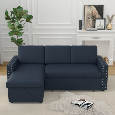85 Inches Sofa Bed, 3 Seater Sleeper Sofa with Storage Chaise, Square Handrail With PullEasy conversion, comfortable upgrade - multi-functional sofa bed, so that every space is full of possibilities. The sturdy pull-out bed frame, large storage space, and highly elastic spongy cushions provide unparalleled comfort. Choose our sofabed for the perfect combination of convenience and comfort. Latitude Run BodLatitude Run