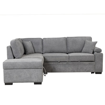 Gerwin 87.4 Rolled Arm Sofa Bed, 2 in 1 Pull Out sofa bed L Shape CouchSofa Bed with Storage OttomanNo more worrying about your friend not having a place to sleep! This foldable sleeper sofa can be easily pulled out as a sofa bed for unexpected guests or visitors. This modern and elegant sofa bed is based on a durable plywood frame that can hold up to 1,000 pounds, filled with high-density foam and upholstered with pLatitude Run