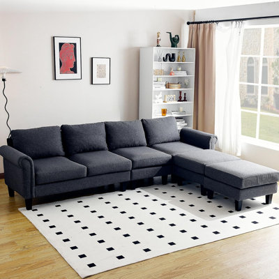 Winston Porter Modular Sectional Sofa, Modular U-Shaped Sectional Sofa, Convertible Sectional Sofa Couch 4 Seat Sofa Set Fabric Sectional Couch With OIt is made of skin-friendly triple-proof fabric, which will feel natural and soft when you sit or lie on it. The overall curves are clean and crisp, and it is available in two colors to match perfectly with other furniture. In addition, its convertible design 118 bench allows you to enjoy your free time and relax in yoWinston Porter
